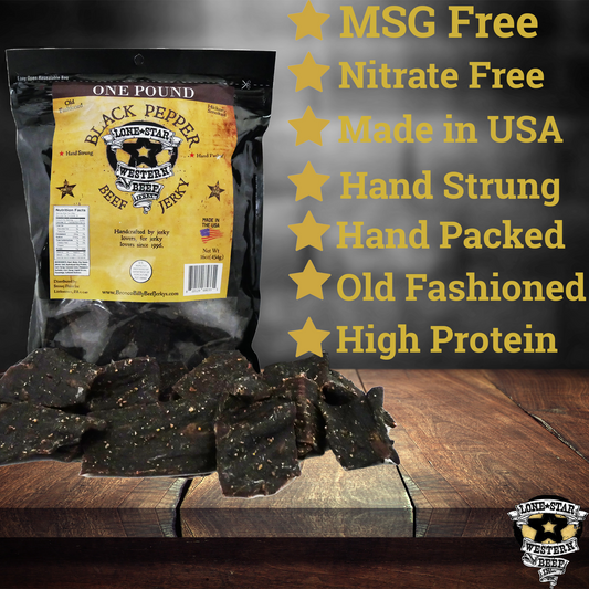 Lone Star Black Pepper Beef Jerky - 1 Pound Resealable Bag - Classic Handcrafted Flavor - Made in the USA