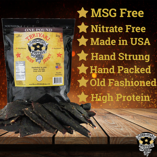 Lone Star Teriyaki Beef Jerky - 1 Pound - Resealable Bag - Savory Handcrafted Flavor - Made in the USA